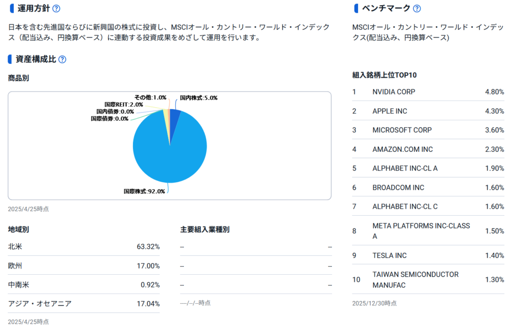 一方で米国への集中を避けたい場合は、全世界株式を軸にして米国株式は比率を抑える方が整合します。